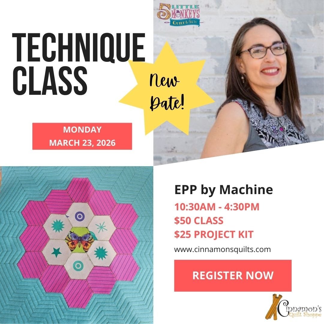 How fun would it be to get on the English Paper Piecing trend without any hand sewing? Join special guest, Angie Lamoree from 5 Little Monkeys Quilt & Sew in Weaverville, NC to unlock your creativity and elevate your quilting skills in this hands-on class!